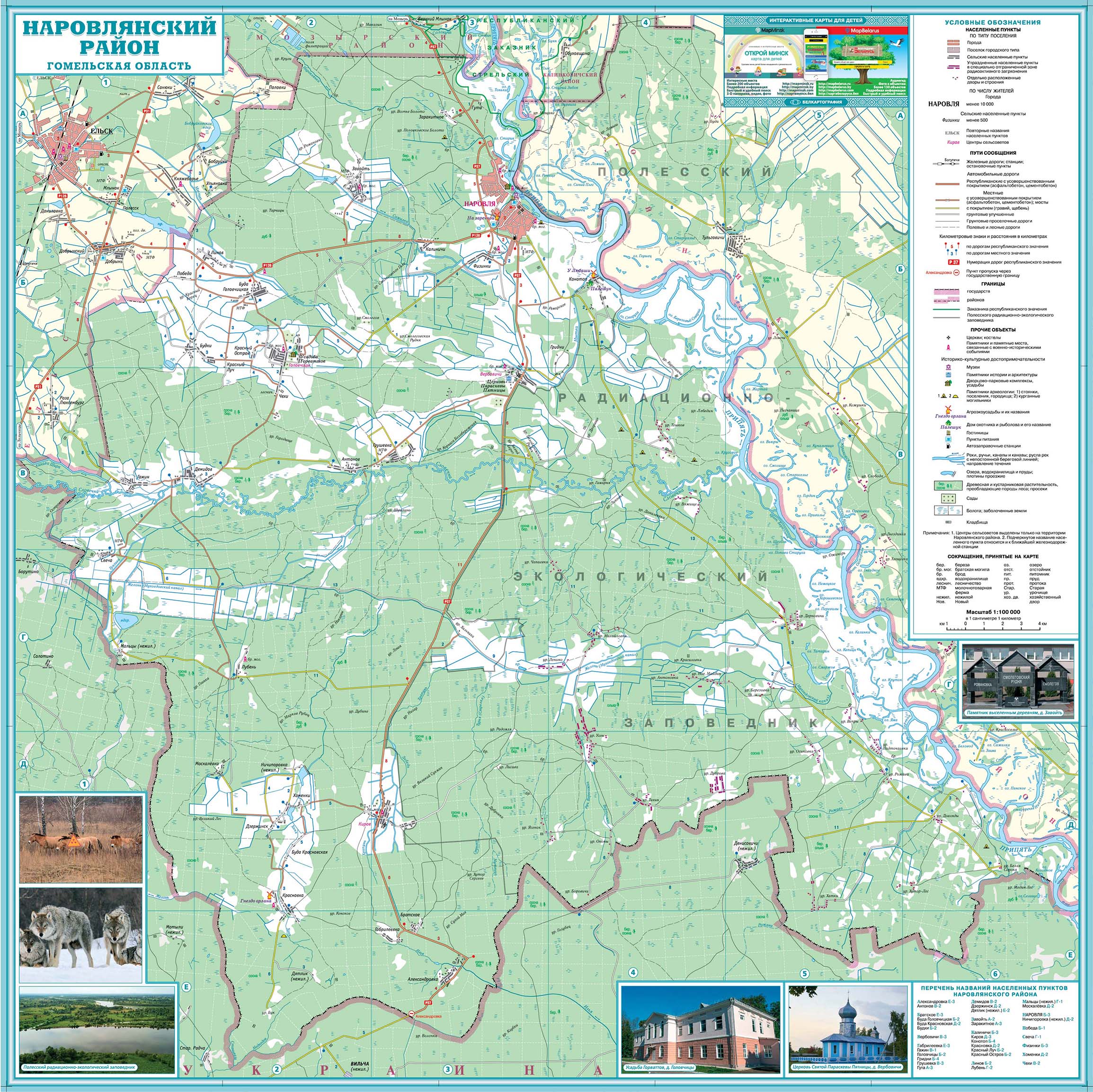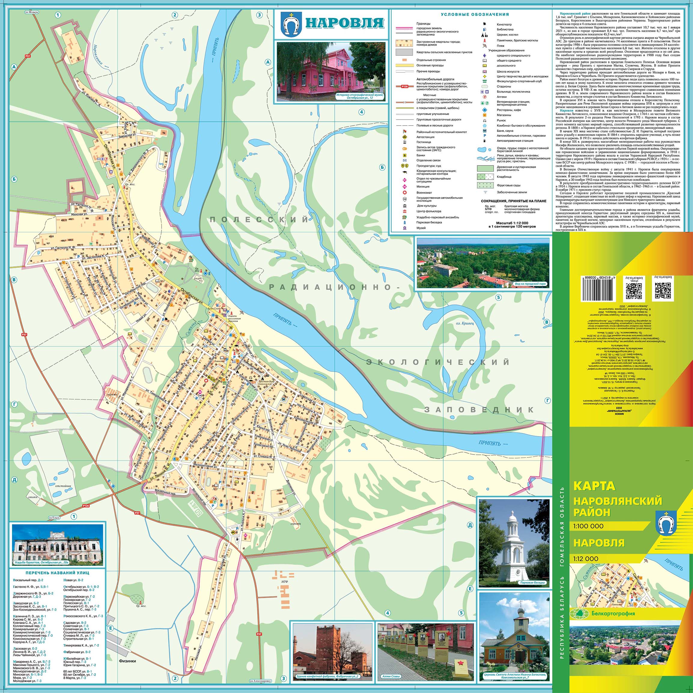 На адным баку выдання вы знойдзеце падрабязную карту Нараўлянскага раёна, на якой пазначаны гідраграфія, населеныя пункты (з указаннем цэнтраў сельсаветаў), расліннасць і славутасці.