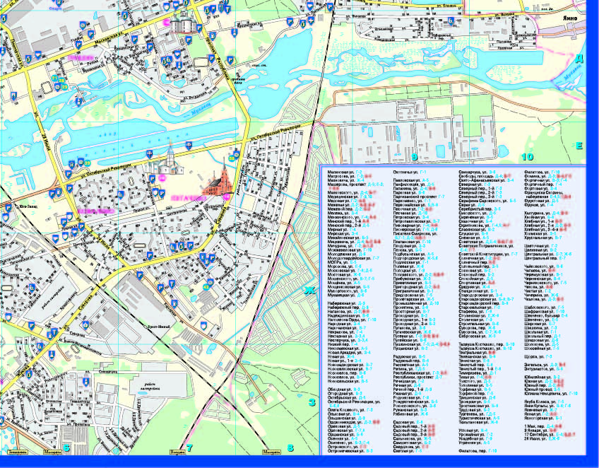 Славутасці, аб'екты індустрыі турызму. Маштаб 1:25 000. Маштаб цэнтра горада 1:10 000.