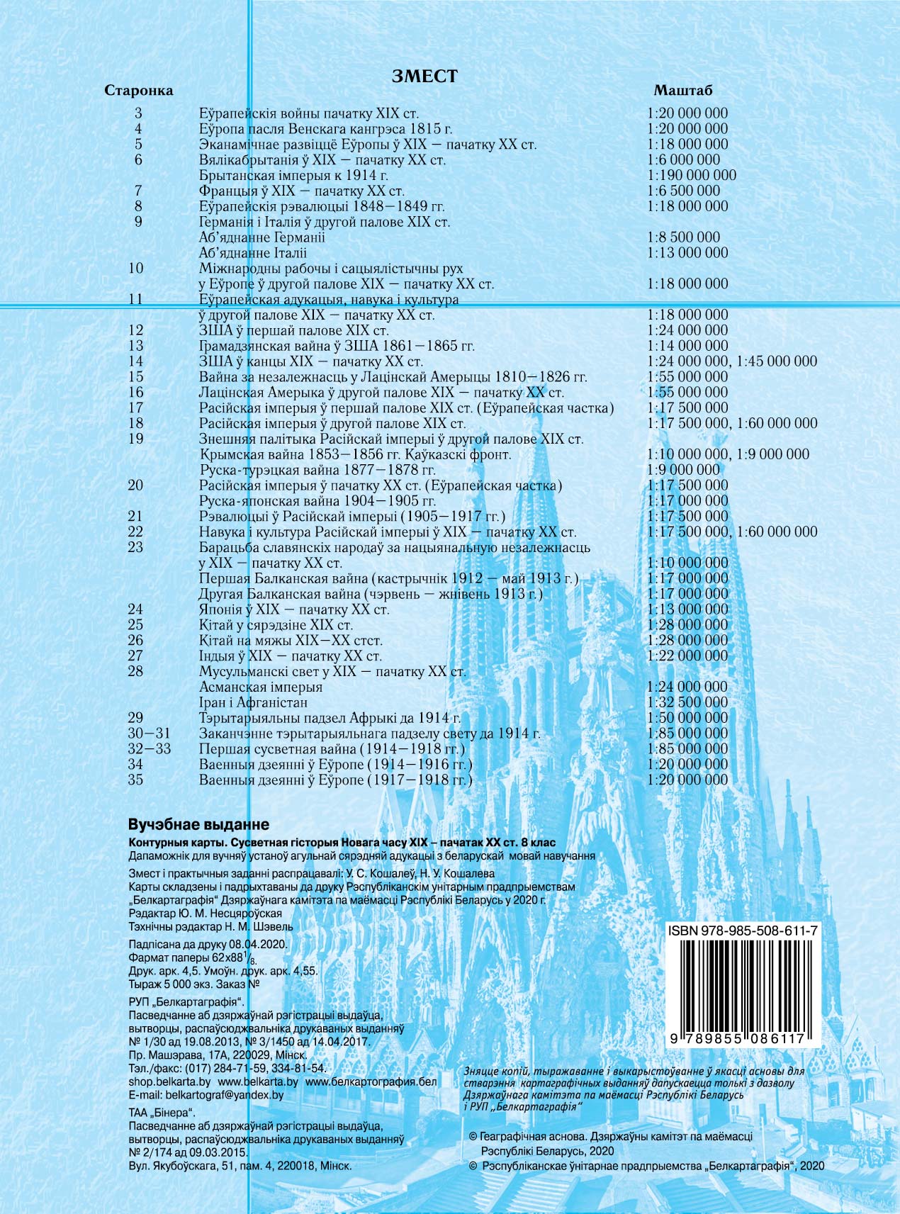 КОНТУРНЫЯ КАРТЫ. СУСВЕТНАЯ ГІСТОРЫЯ НОВАГА ЧАСУ (ХІХ– пачатак ХХ ст.). 8 КЛАС