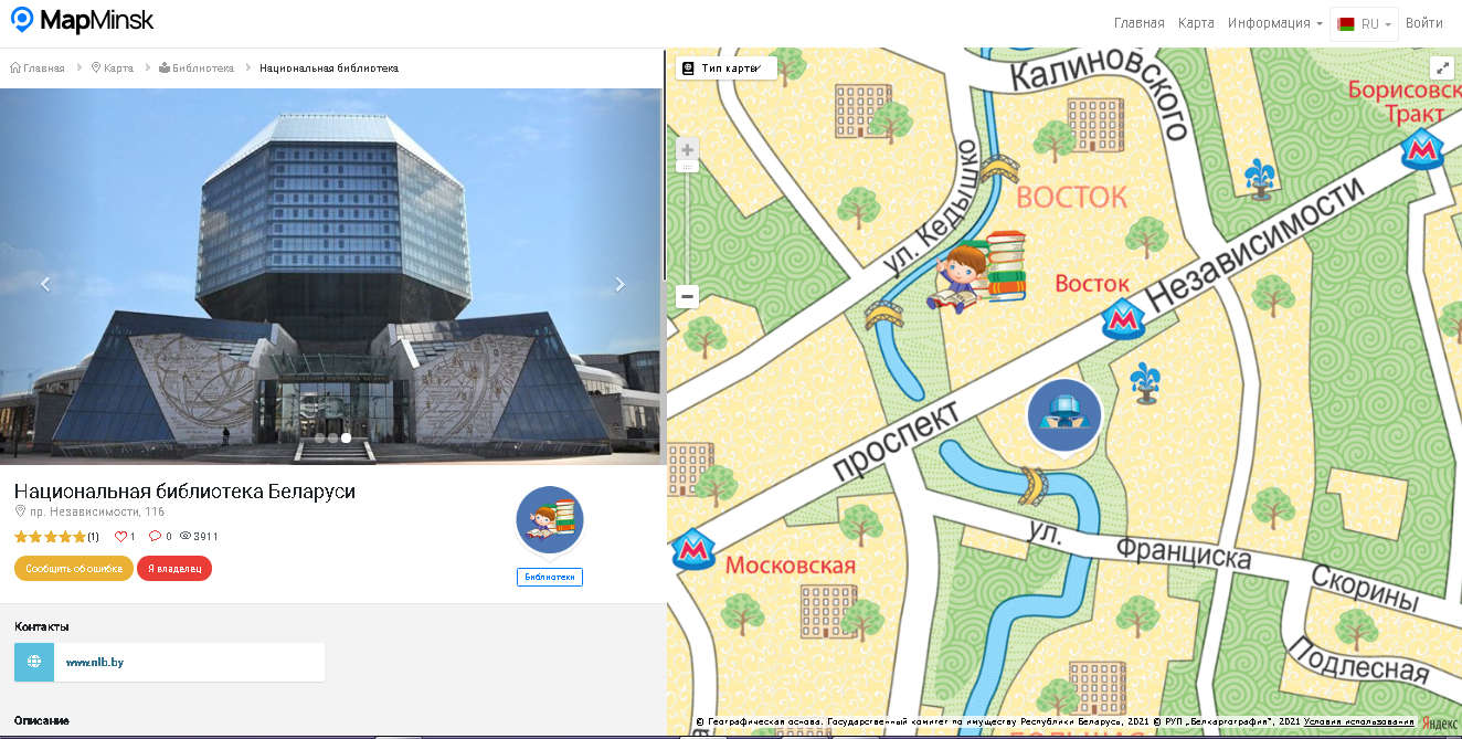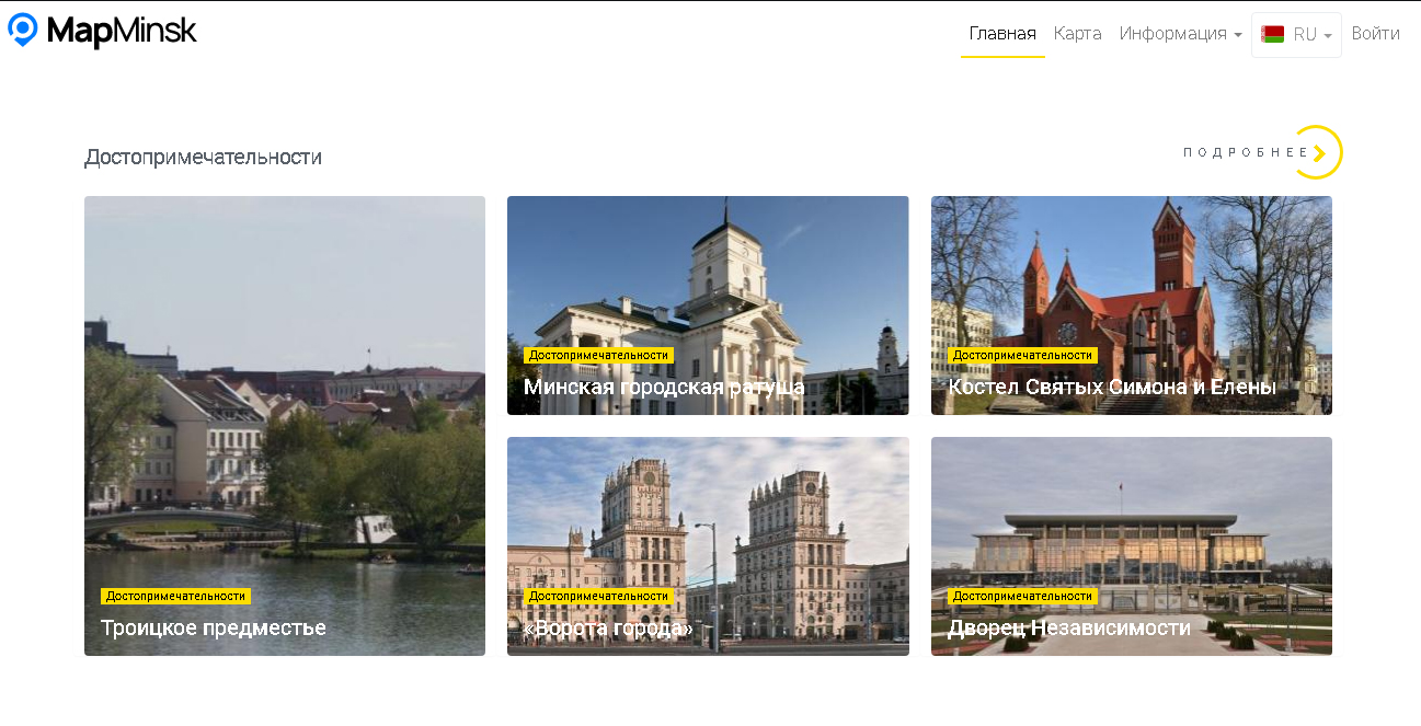Интерактивная карта является своеобразным путеводителем, справочником для детей и их родителей. Путешествуя по карте, можно ознакомиться с основными достопримечательностями города, получить сведения о театрах, музеях, парках, спортивных комплексах и других интересных объектах. На карте показаны более 200 объектов, систематизированных по категориям. К каждому объекту дана краткая информация: название, адрес, ссылка на официальный сайт, фотографии. К некоторым объектам дана более полная информация: видео, текстовые сведения, виртуальный тур, который можно посмотреть на экране монитора или используя очки виртуальной реальности. Карта представлена на двух языках: белорусском и русском.