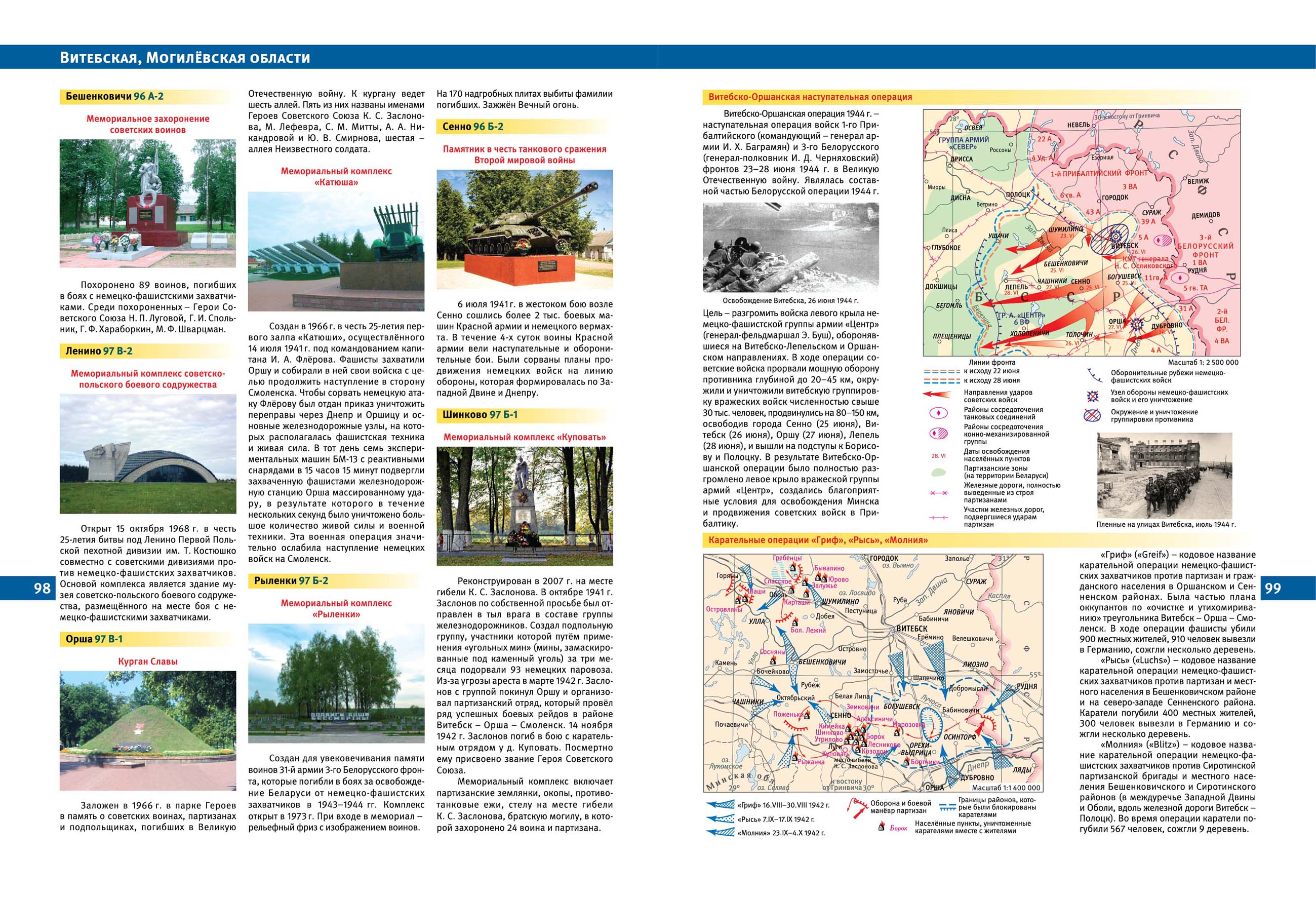 Текстовое описание крупнейших мемориалов и памятников дополнено слайдами и фотографиями. Один из разделов атласа посвящен городам воинской доблести. Он наполнен описаниями событий Великой Отечественной войны, прославивших эти города. Созданный атлас послужит расширению историко-культурного сотрудничества Беларуси и России, укреплению дружбы между братскими народами, привлечению широкого внимания к военно-историческим объектам нашей общей истории времен Великой Отечественной войны, развитию туризма и гражданско-патриотическому воспитанию молодого поколения Союзного государства.