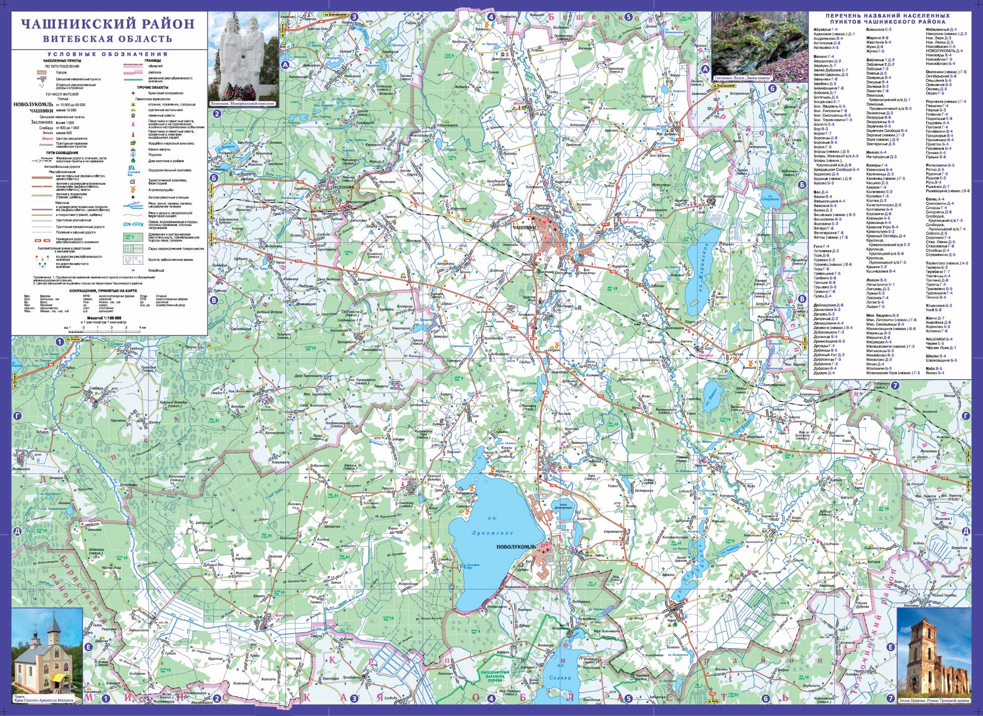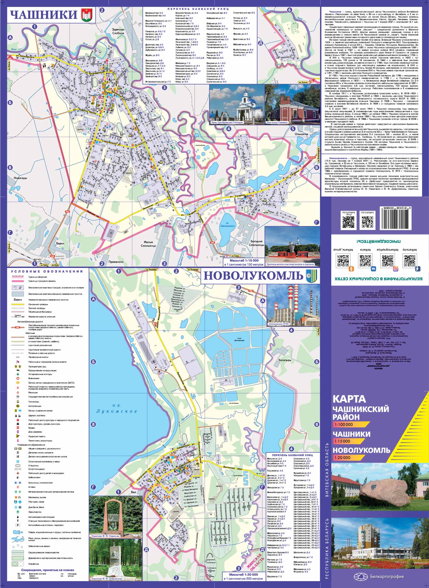 План города Чашники дан в масштабе 1:15 000, план Новолукомля – 1: 20 000, карта района – в масштабе 1:100 000.