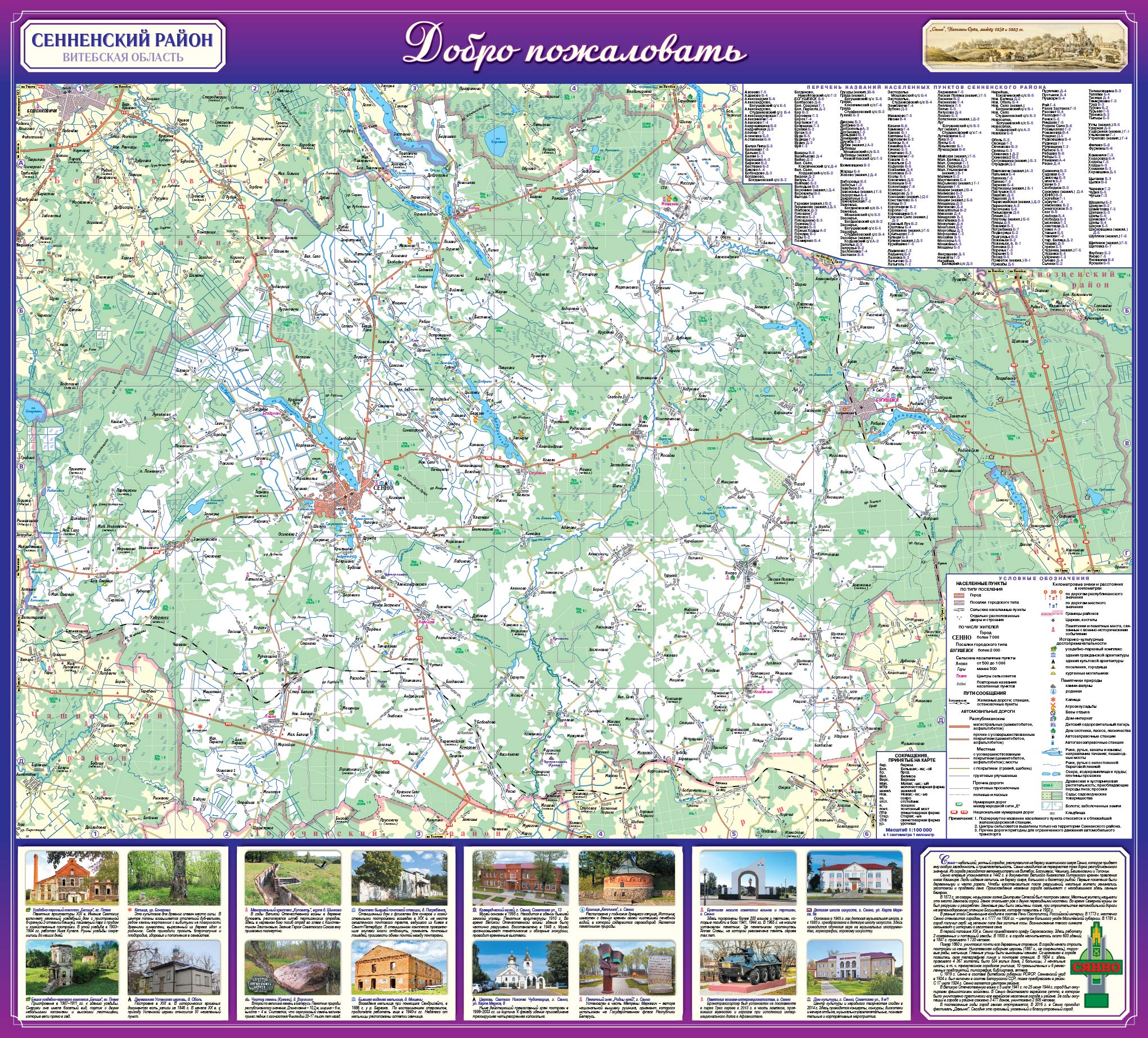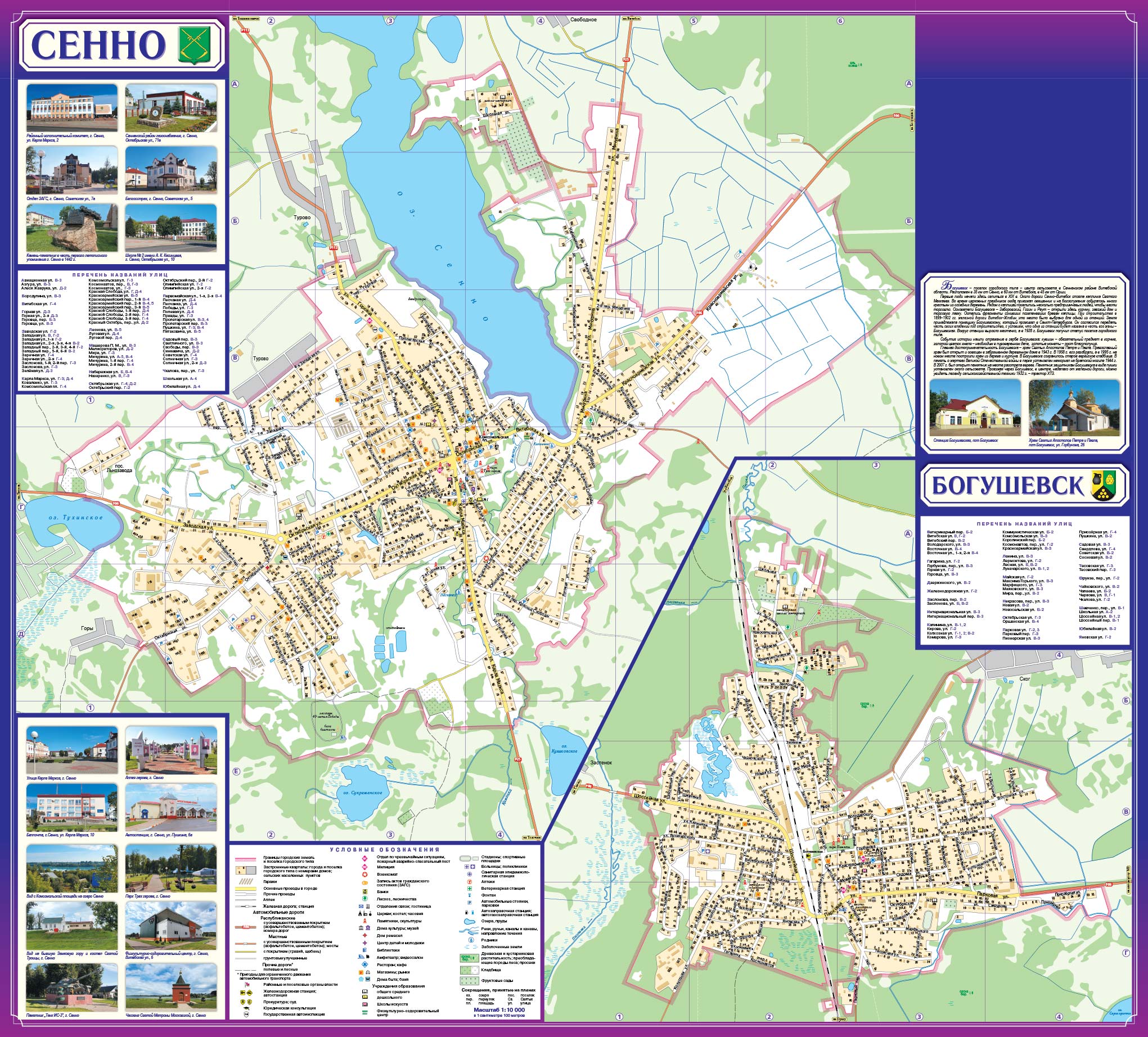Планы Сенно и Богушевска даны в масштабе 1:10 000, карта Сенненского района в масштабе 1:100 000.